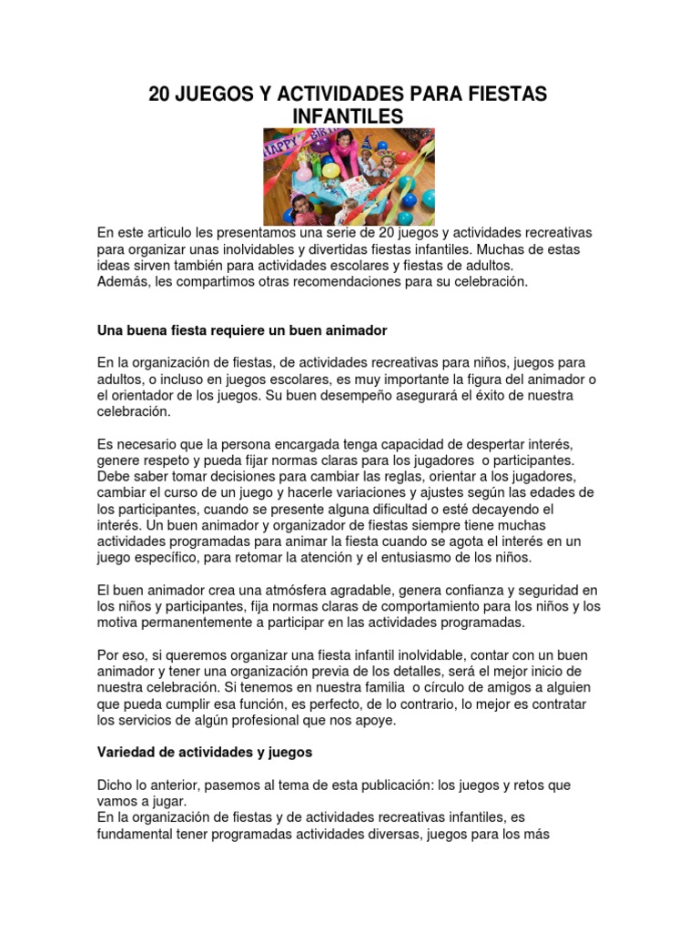 / una experta en animación infantil nos cuenta cómo animar una fiesta infantil a partir de diferentes actividades. ¿sabes cómo animar una fiesta infantil o lo que necesitas para ello? Para asegurarte de que la fiesta sea un éxito, puedes contratar los servicios de empresas especializadas en cumpleaños infantiles. Las fiestas infantiles no terminan de serlo si no tenéis forma de hacer que los pequeños disfruten. Los globos, la música, la piñata y las bolsas con caramelos y juguetes.